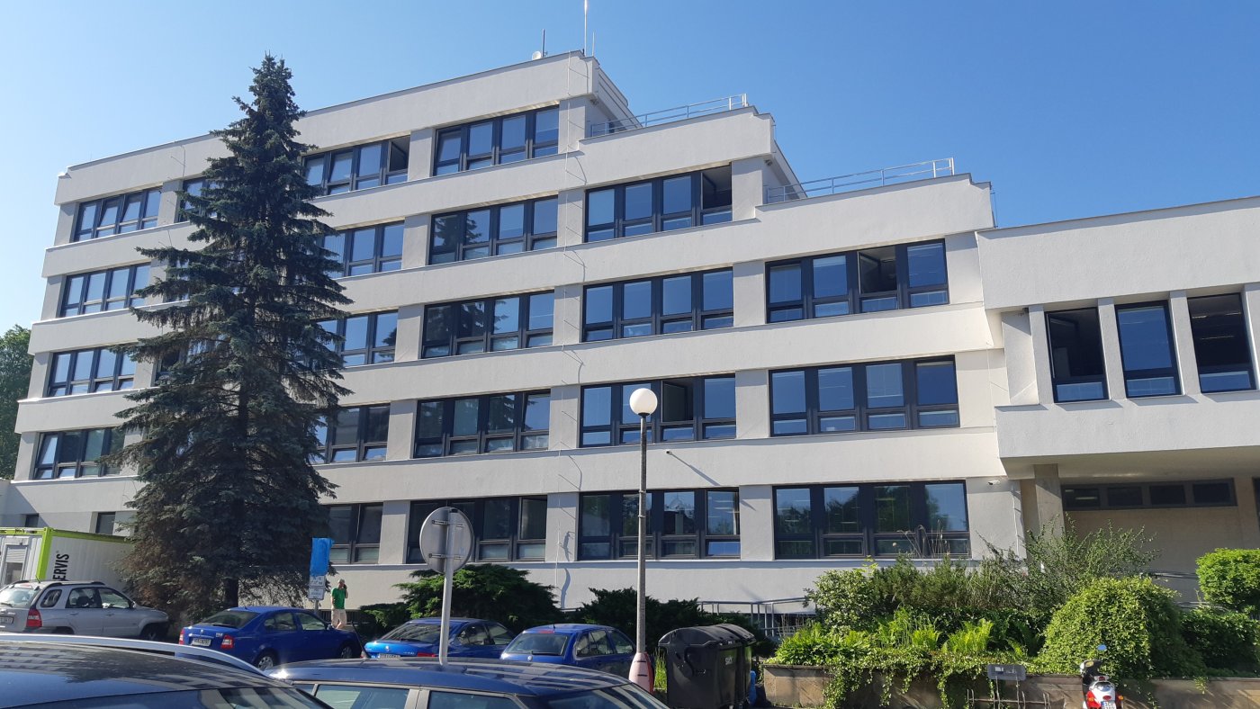 Mytí celé prosklené budovy i jeho neprosklených stěn.